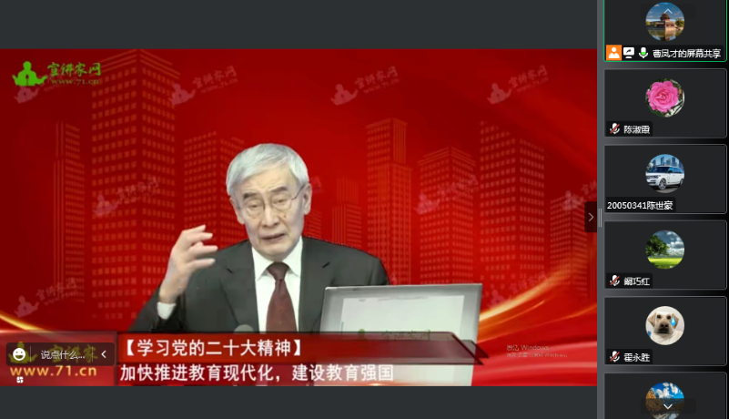 张教授对党的二十大的重要历史方位做了深入分析,紧密结合党的二十大报告中“实施科教兴国战略,强化现代化建设人才支撑”的相关论述,向我们展示了近些年“加快推进教育现代化,建设教育强国”的重要成就;系统梳理了历次党代会关于教育事业论述的发展脉络,结合历史与现实,运用生动的案例和详实的数据,深入阐释了未来更长时期党和国家在教育、科技、人才战略的整体部署,以及到2035年建成教育强国的总体目标、重点步骤和加快建设教育强国的政策导向;围绕党的二十大报告关于“教育、科技、人才是全面建设社会主义现代化国家的基础性、战略性支撑”谈了学习体会,他强调:站在“两个一百年”奋斗目标的历史交汇点上,全面建设社会主义现代化国家,教育是基础,科技是关键,人才是根本,我们应全面理解教育、科技、人才在全面建设社会主义现代化国家中的战略地位,深刻认识新时代加快建设教育强国、科技强国、人才强国的使命和任务,准确把握坚持教育优先发展、科技自立自强、人才引领驱动的相互关系,全力以赴将党的二十大的战略决策和整体部署落实到教育系统各个领域各个环节。