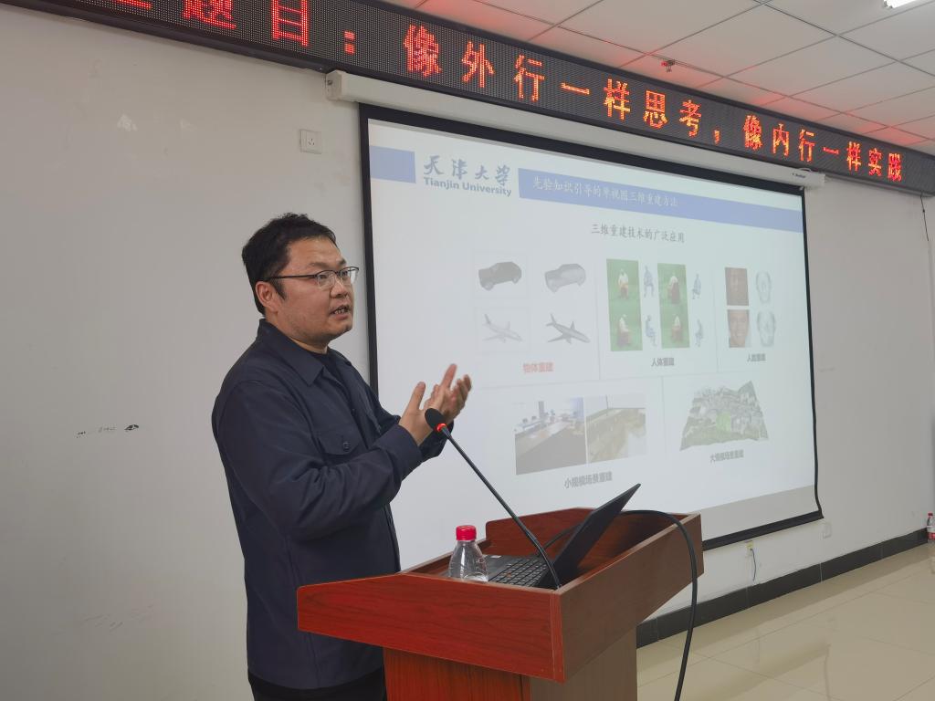 讲座中,聂为之教授详细讲述了其研究内容:先验知识引导的单视图三维重建方法,基于先验知识的文本生成三维模型框架,基于记忆网络与因果推理的点云补全框架。在三维信息缺失、跨模态信息差异大、数据集缺乏等科研难点和关键问题上,聂为之教授像外行一样跳出惯常思维,像内行一样进行科学探究,提出了跨域检索、联合表征学习、因果推理等解决方案,实现了三维模型的检索、重建、补全等功能。