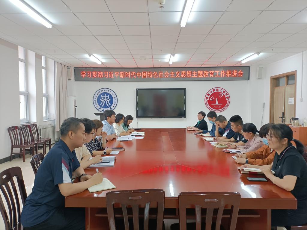 党委在科学楼B座713会议室召开学习贯彻习近平新时代中国特色社会主义思想主题教育工作推进会,大奶主播党委书记曹凤才主持会议,各党支部书记、科室负责人参会。