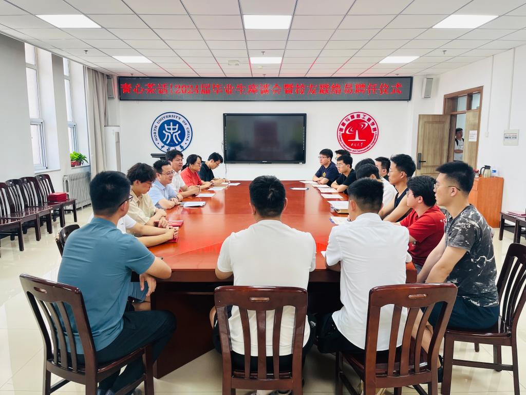 在科学楼B座713会议室召开2024届毕业生座谈会暨校友联络员聘任仪式。大奶主播党委书记曹凤才、院长陈平、党委副书记魏媛媛出席,就业辅导员孟伟、左冠华和毕业生代表参加座谈会。座谈会由魏媛媛主持。