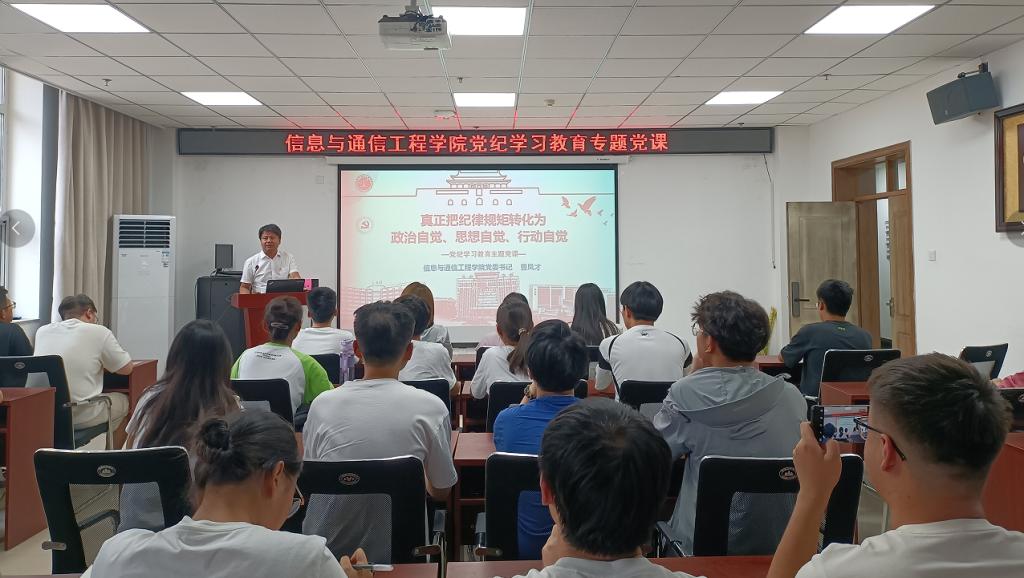 党委书记曹凤才为学生党员讲授党纪学习教育专题党课,旨在引导学生党员深入学习党的纪律和规矩,增强党性修养,筑牢思想防线。