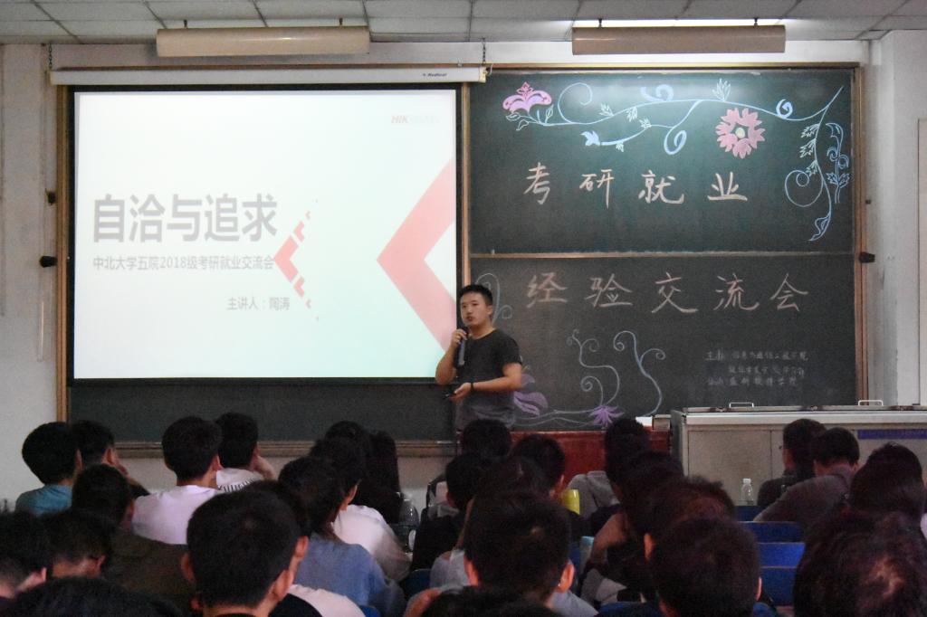 信息对抗技术、生物医学工程、信息工程三个专业的同学。每场经验交流会均请到了2018届毕业生中在考研和就业过程当中颇有心得、经验丰富的考研大神或就业达人。他们从自己的亲身经历出发,倾囊相授,与大家分享了详细实用的经验和技巧,并回答了同学们的相关疑问。每场交流会几乎都座无虚席,不仅有三年级的同学还有其他年级对其感兴趣的同学到场认真聆听,在交流环节,现场同学也积极提问,主动沟通,现场气氛活跃有序,大家均有获益。
