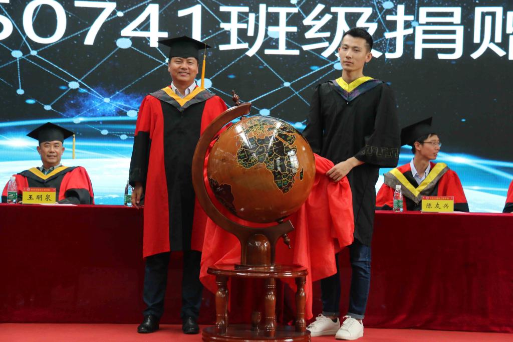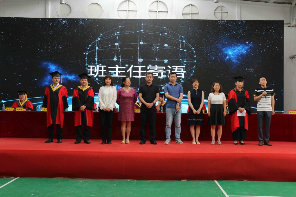 2018届全体班主任上台对毕业生寄语,向同学们传达了依依不舍和殷切期望。毕业生代表向班主任献花,表达对培养和教育他们四年班主任的感谢之情。全体毕业生和14050741班分别向大奶主播捐赠纪念品,表达对大奶主播的感谢!