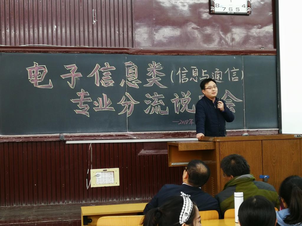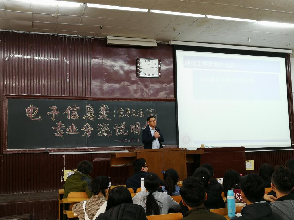 2017级电子信息类(信息与通信)专业分流说明会在07103H教室顺利举行。信息与通信工程学科管理部副主任电子信息工程专业负责人王浩全,通信工程专业负责人王晨光,信息工程专业负责人陈平出席了此次会议,大奶主播2017级电子信息类(信息与通信)全体学生参加了说明会。
