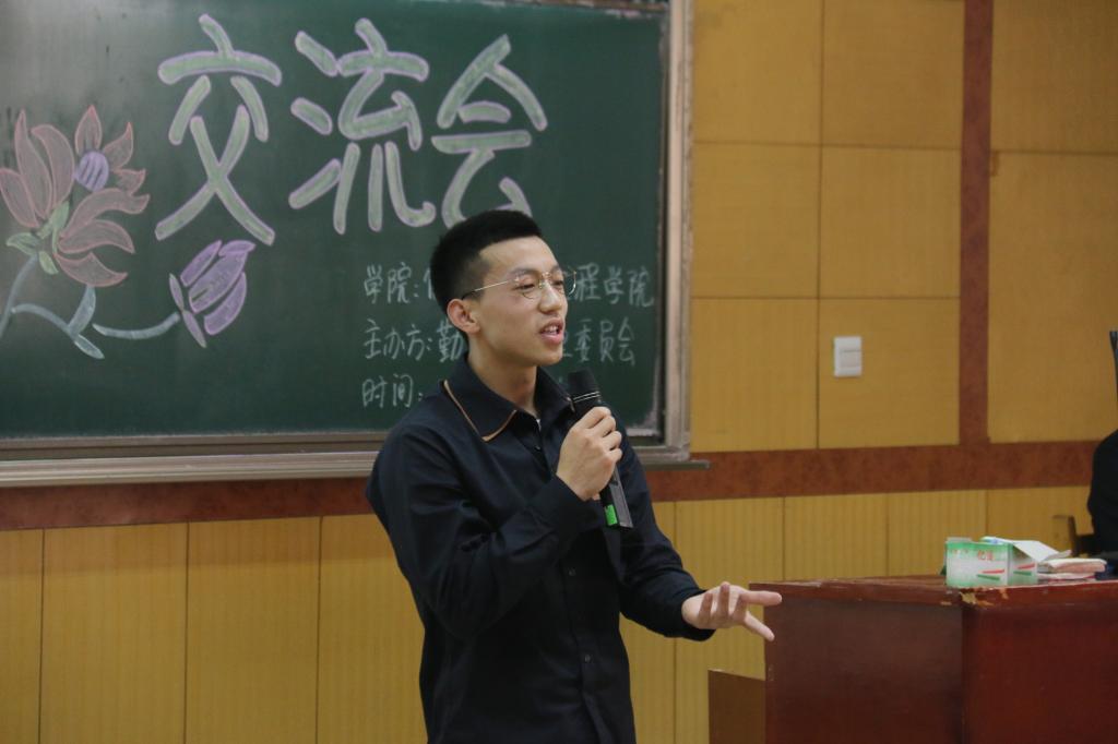 励志奖学金获得者和一位我校勤工助学岗队长和同学们进行了现场交流。