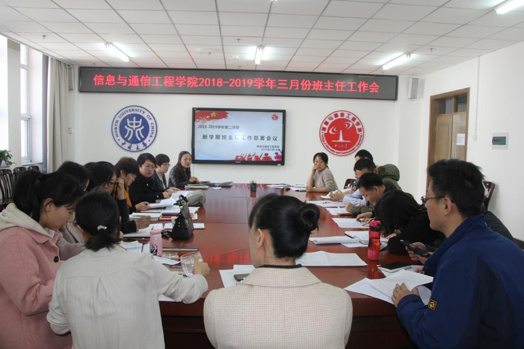本次会议分别从安全教育工作、心理健康工作、学风建设工作、班级日常事务工作等方面进行部署,重点强调学生思想政治教育工作、家长通知书寄发、上学期班级成绩汇总分析、新学期班级学习工作计划制定、重点关注学生的教育管理工作、学业预警工作、德育工作等方面的工作。随后,各班主任就上学期所带班级的具体情况以及班主任工作所遇到的问题进行了交流和探讨。最后,院党委副书记兼副院长魏媛媛老师要求各班主任重点做好学生返校后的思想状况摸底工作,关注重点群体,及时给予帮助。她还对本学期的安全教育、学风建设、心理健康工作进行了重点安排。