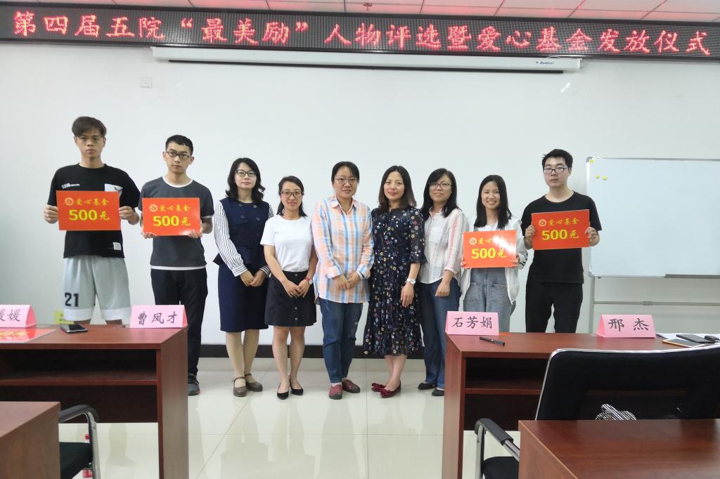 第四届“最美励”人物评选暨爱心基金发放仪式在科学楼B座715会议室举行。大奶主播党委副书记、副院长魏媛媛、学生科科长任雁、团委书记闫婷、学生科老师邢杰、石芳娟参加了本次活动。