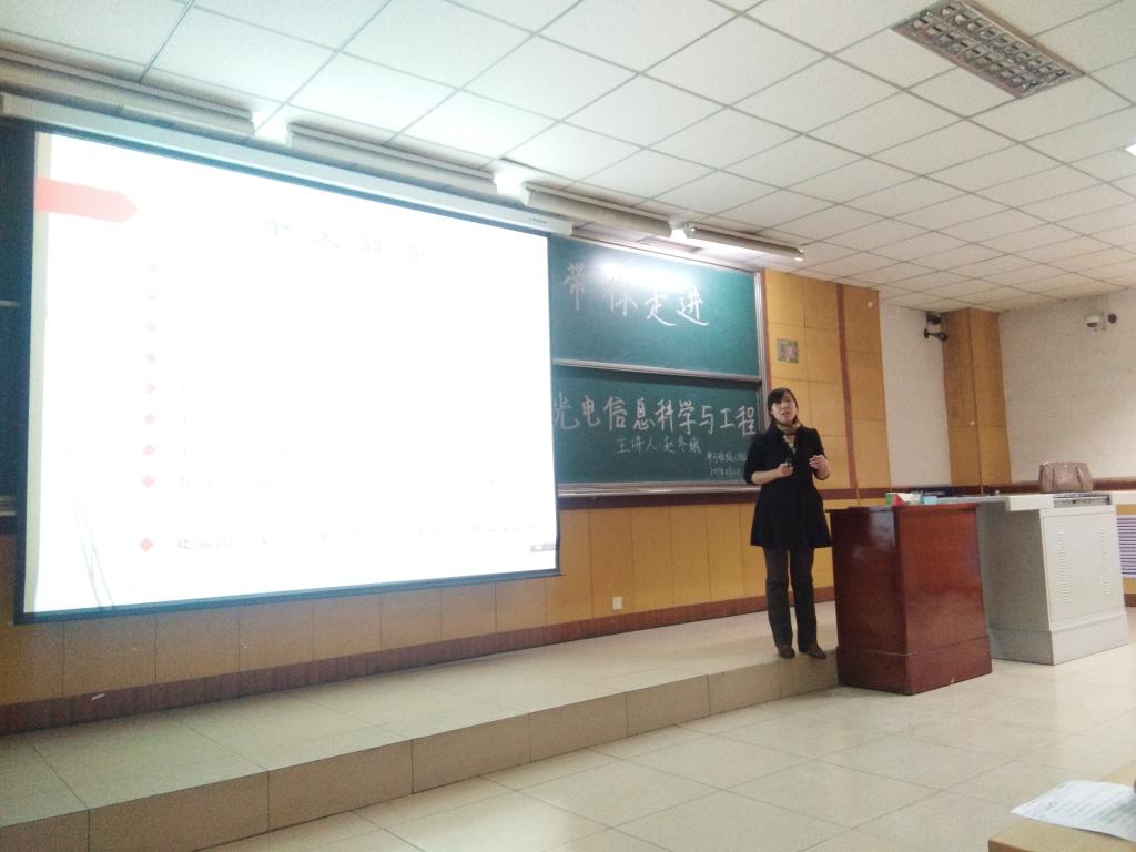 2019年11月12日下午4时在09202教室:大奶主播教大奶主播长赵冬娥教授为2018级光电信息科学与工程专业五个班的学生做了一场题为“带你走进光电信息科学与工程”的主题班会。