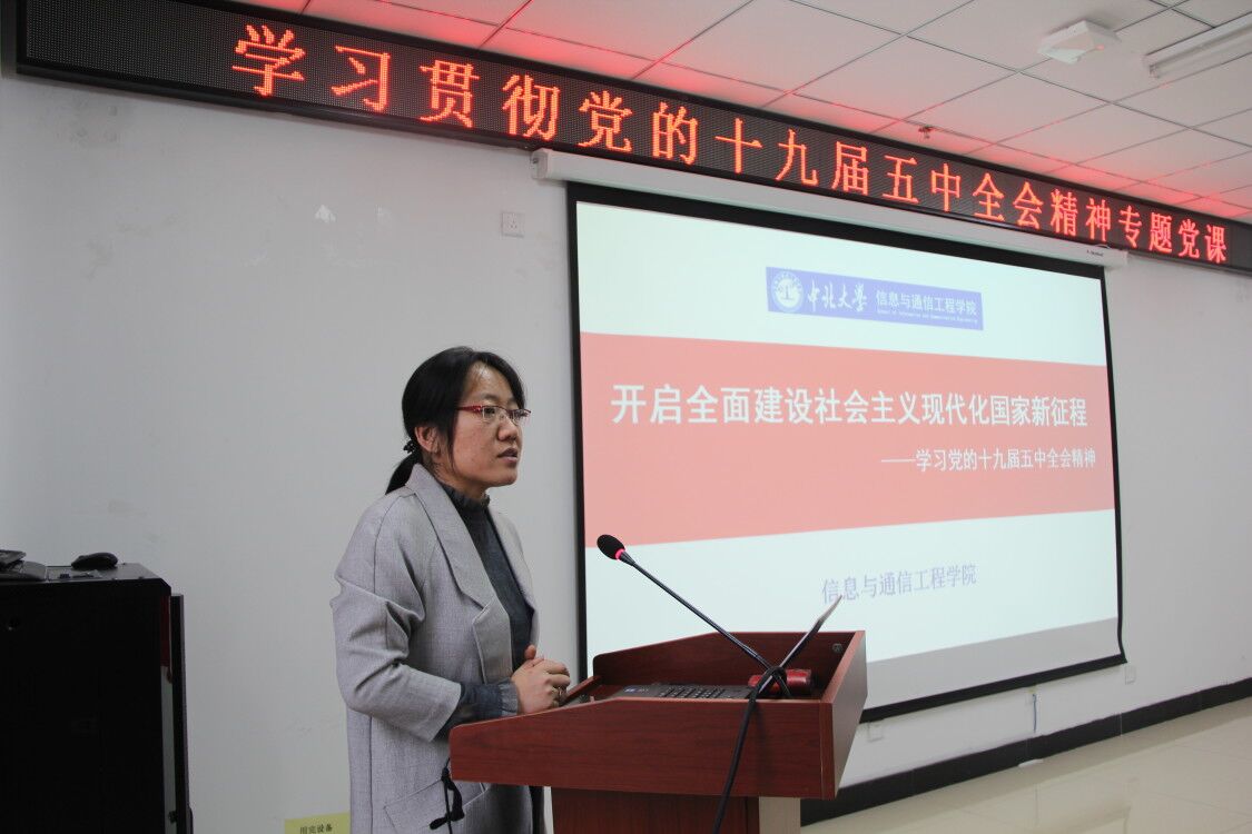 党委副书记魏媛媛为信息对抗技术专业师生党员宣讲“学习贯彻党的十九届五中全会精神”专题党课,对全会通过的《关于十四五规划和二〇三五年远景目标的建议》内容做了系统地介绍和分析。