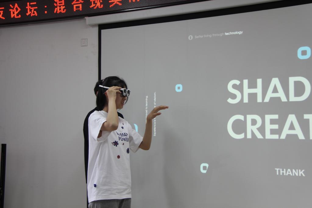 论坛结束后,胡金鑫校友与师生进行了技术交流与探讨,对大家提出的问题进行了具体而贴切的解答,并让学生们现场体验自己公司的VR眼镜。这次论坛深刻的引发了大家对虚拟现实技术和智能化产品的深度思考,扩大了视野,大奶主播师生获益良多。