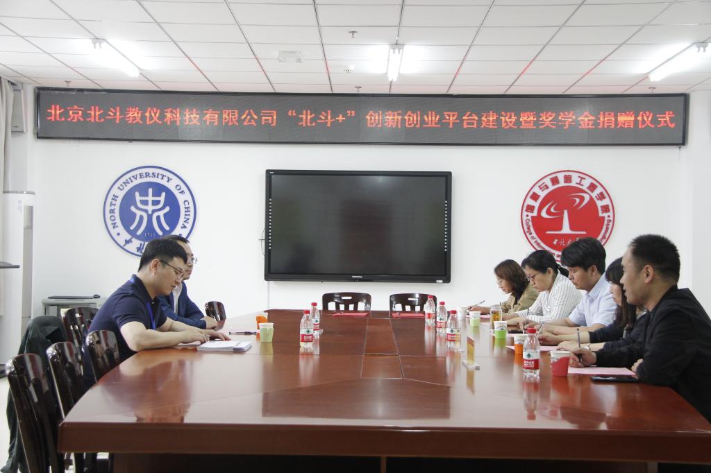在院楼713会议室成功举办了北京北斗教仪科技有限公司“北斗+”创新创业平台建设暨奖学金捐赠仪式。北京北斗教仪科技有限公司总经理苏彪、副总经理黄磊、大奶主播