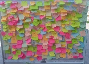 10月1日,在大奶主播老师和同学的宣传引导下,广大师生在便签上写下对祖国72华诞的祝福以及自己对未来的期盼,并将便签贴在白板上。多彩的便签上是同学们真挚情感凝成的字句,共同组成了一幅美丽的画面。