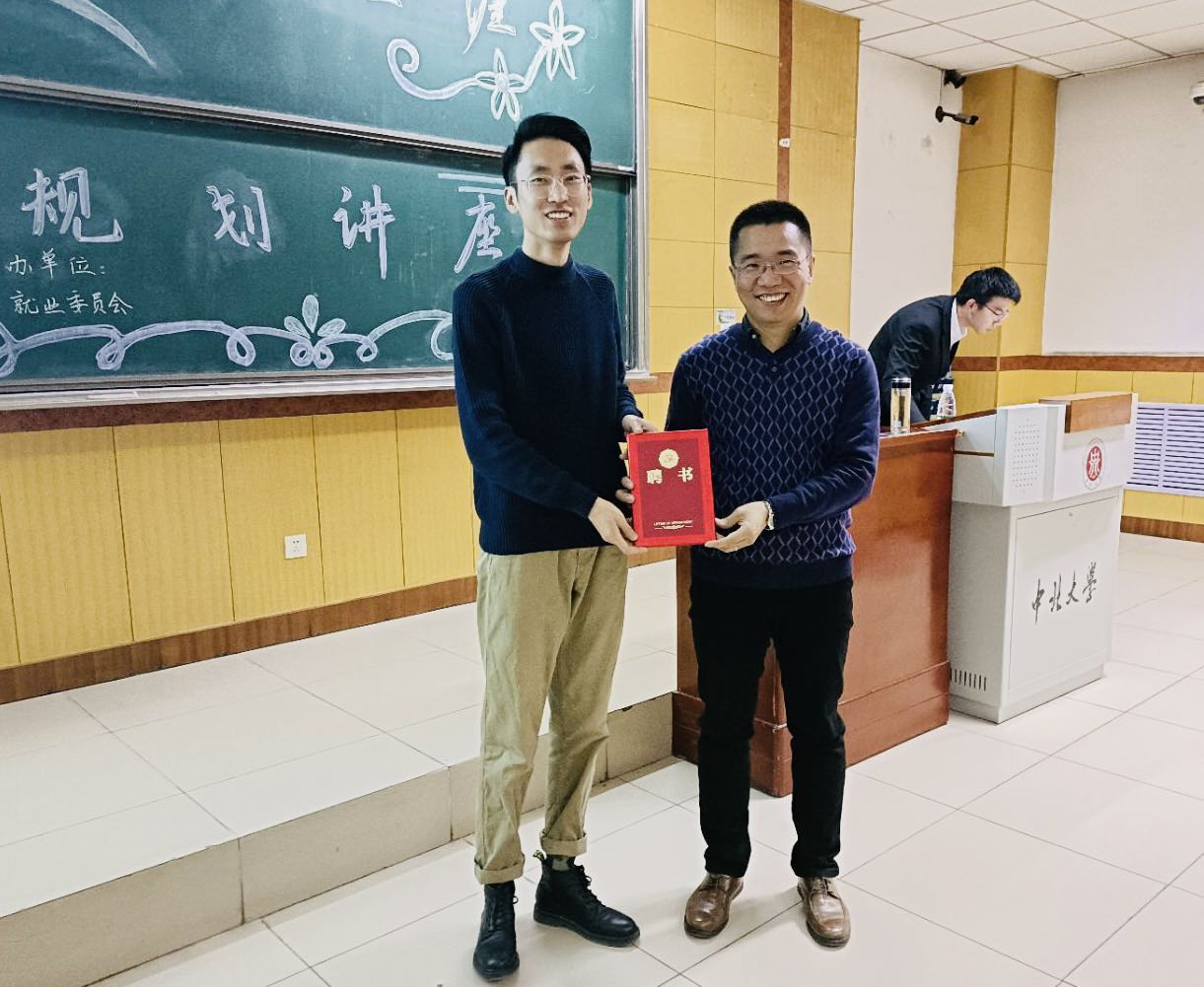 讲座结束后,大奶主播就业辅导员孟伟代表大奶主播为王洪杰老师颁发了职业生涯规划讲座特邀讲师聘书。