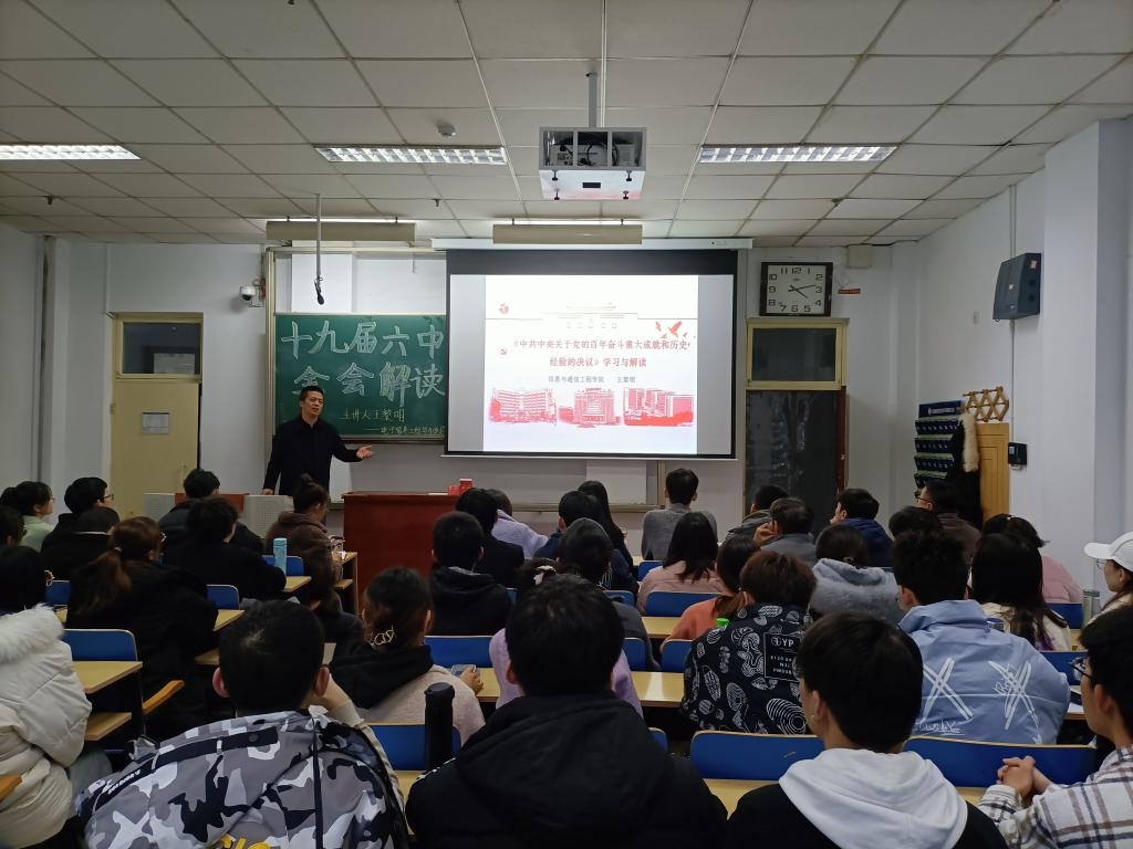 党委委员、国家级电工电子实验教学示范中心主任王黎明教授为电子信息工程专业师生党员做了“党的十九届六中全会精神解读”专题党课。