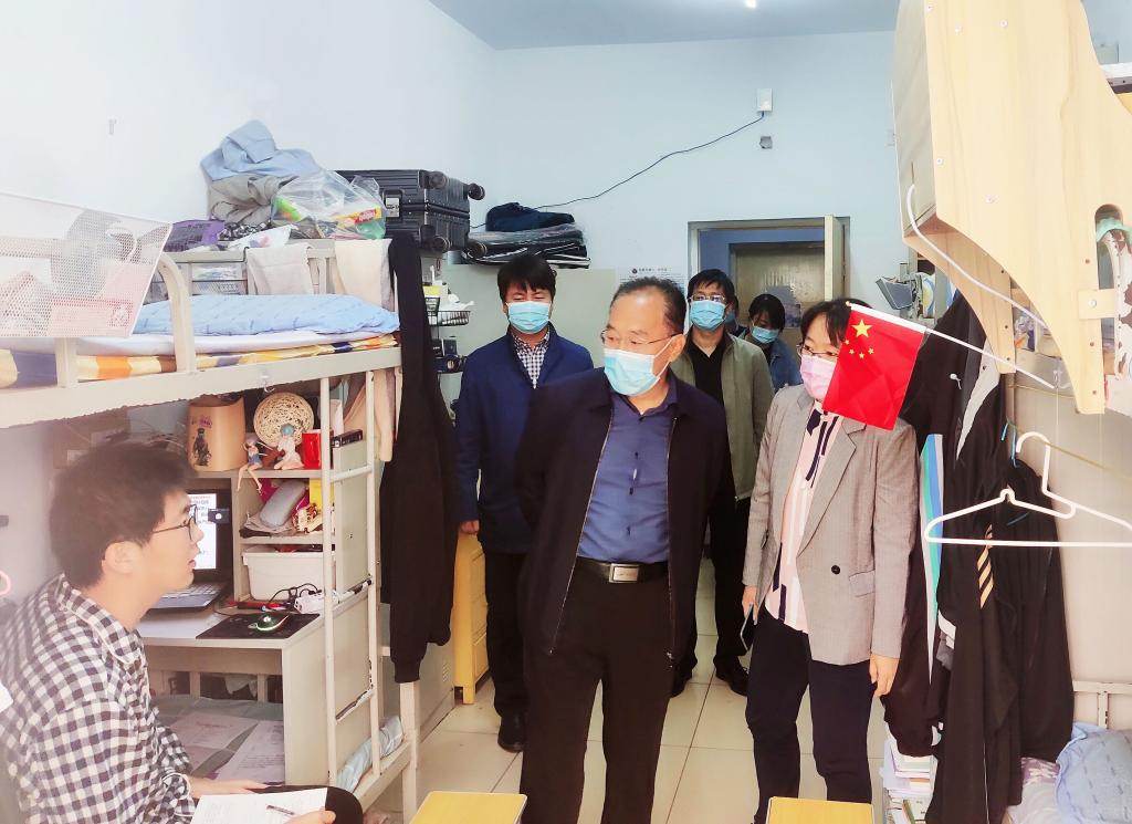随后,苏校长一行来到文韬4学生公寓,就学生线上学习、住宿环境、饮食以及文体锻炼等方面与同学们进行了交谈,他叮嘱同学们要严格遵守疫情防控期间学校的各项管理规定,加强锻炼、注意宿舍卫生,勤通风,保持良好的学习及生活习惯。
