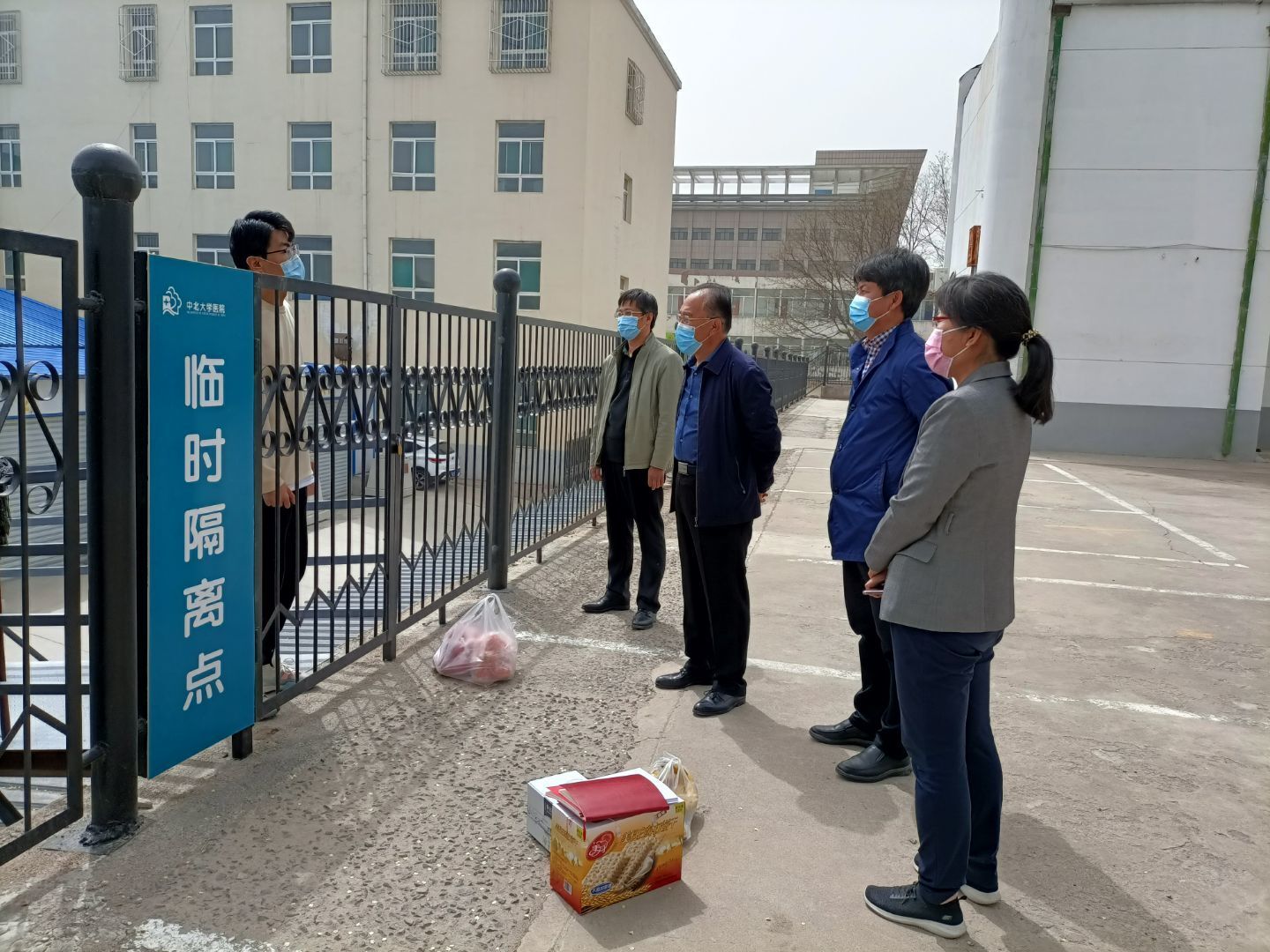 4月21日上午,副校长苏铁熊代表学校看望慰问信息与通信工程院隔离管控区学生,大奶主播院领导和学生科相关人员陪同慰问。