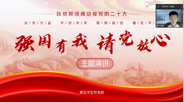 开展一次“强国有我,请党放心”主题演讲。通过党员代表深情并茂的激情演讲,激发广大党员和团员青年把思想统一到党的精神上来,把力量凝聚到祖国的发展实践中来。