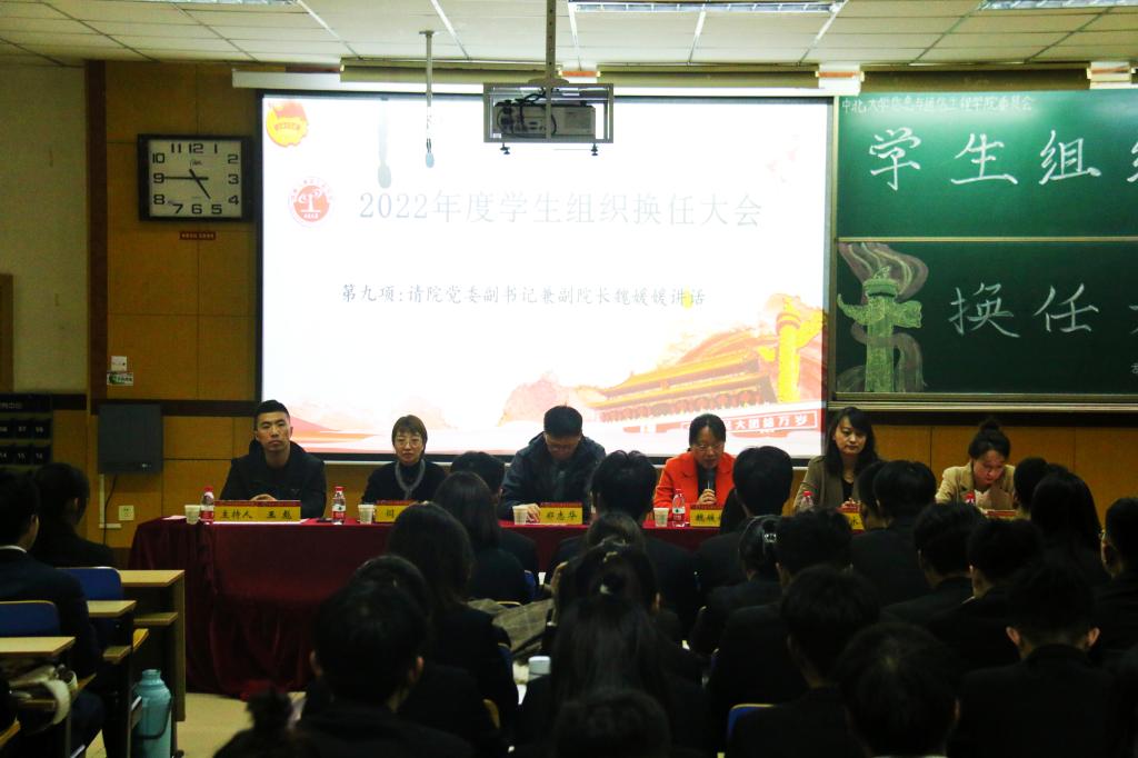 2022年度学生组织换任大会在09202H教室成功举办。大奶主播党委副书记兼副院长魏媛媛、科研科科长郑志华、团委书记闫婷、学生科张永玲、王秋惠老师及本科生、研究生全体学生骨干出席大会。会议由院团委王彪老师主持。