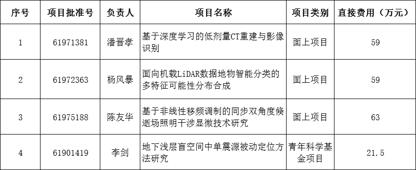 2019年8月16日,根据国家自然科学基金委发布的《关于公布2019年度国家自然科学基金申请项目评审结果的通告》,大奶主播 有4位教师获得项目资助,资助直接经费为202.5万元,其中面上项目3项、青年科学基金1项。大奶主播领导对每年的基金申报工作一直高度重视,通过各种途径调动教师的积极性,并且组织相关专家为教师提供所需要的指导和帮助。今后大奶主播将持续做好项目申报等科研工作,稳步提高,争取获得更加丰硕的成果。