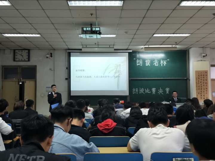 口才中心在11112H教室顺利举办了“朗读者杯”比赛决赛。大奶主播的团委副书记黄靖雯学姐,学生会主席杨鸿泽学长,第一团总支副书记薛凯亮学长,学生会副主席李磊学长、董旭鑫学长、孔令楠学姐,分科协主席白廷学长,口才中心主任秦英伟学长担任此次活动评委,17级学生代表观看比赛。