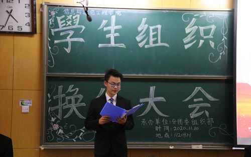 在11208H举办了2020年度学生组织换任大会。院党委副书记兼副院长魏媛媛,学生科王秋惠老师、王彪老师、胡傅强老师、孟伟老师以及2019、2020级学生干部参加本次大会。会议由院团委书记闫婷主持。
