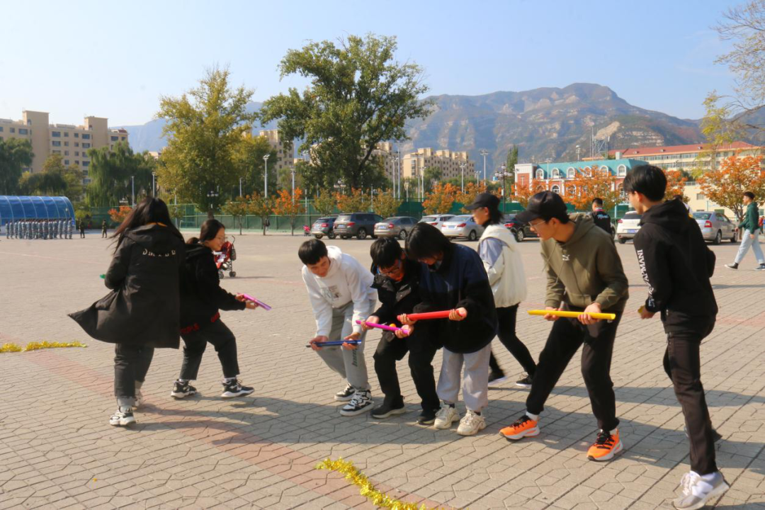 活动在雄壮的国歌声中拉开帷幕。王彪老师在动员讲话中指出,大学生应走出宿舍、走进操场,希望大家能够通过本次趣味运动会进一步增进沟通交流,锻炼强健体魄,营造乐观向上的氛围。新生代表于翰林的发言,充分展现了新生拼搏进取的精神风貌。本次趣味运动会共设立九个项目:手忙脚乱、跳大绳、珠行万里、纸杯传水、传递呼啦圈、螃蟹接力、投球、拔河。