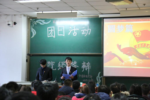举办,以“我的中国梦,青春筑梦中北”为主题的团日活动第二次答辩于2015年12月5日下午两点半在11409教室顺利召开。出席本次活动的嘉宾有院团委副书记李欣老师,院团委副书记张建鑫同学,院学生会主席郭志浩同学,院第一团总支副书记范少波同学,院第二团总支副书记项祎祎同学,院第三团总支副书记关咏元同学及各院组织部部长等。