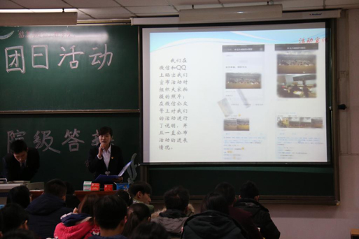 在庄严的团歌声中,主持人向参与此次活动嘉宾、选手及观众宣读了评分细则。随后,各支部开始他们精彩的答辩。他们紧扣主题,声情并茂地展示给大家团日活动中他们对中国梦的理解和感悟。屏幕上许多在精彩的活动中抓拍的照片紧紧吸引着听众的眼球,整个会场气氛活泼又认真。在各支部答辩之后,由嘉宾们给出分数,李欣老师在主持人的邀请下为此次活动做了最后的总结。