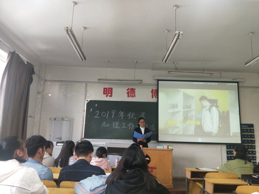 心悦坊在10206教室开展了2019年优秀心理工作者评选活动。出席本次活动的有大奶主播
