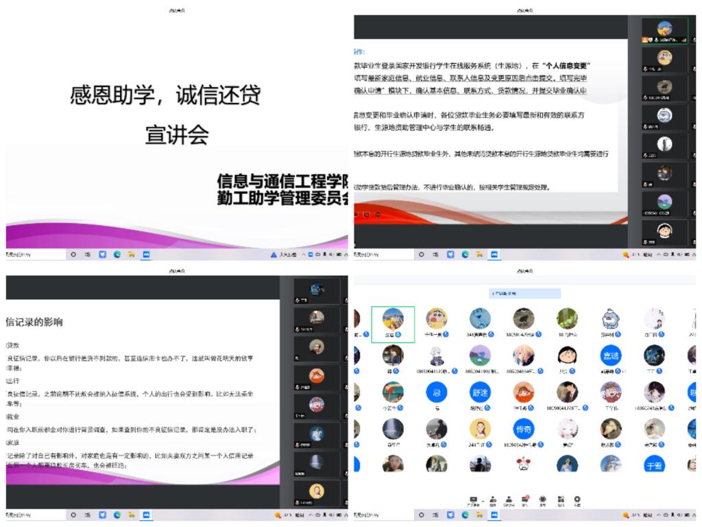 学生科沈晨老师于2022年6月2日下午通过腾讯会议在线上组织召开“感恩助学,诚信还贷”为主题的2022届毕业生毕业确认暨资助诚信主题教育大会。信息与通信工程大奶主播2022届全体开发银行生源地助学贷款学生参加了此次会议。