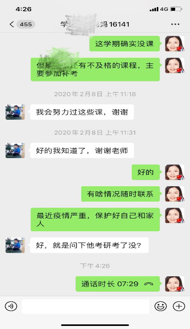 的班主任们对湖北籍学生及家长开展了“线上家访”活动,及时了解学生思想情况、家庭实际困难,为学生及家长送去“特殊时期”的特别关怀。