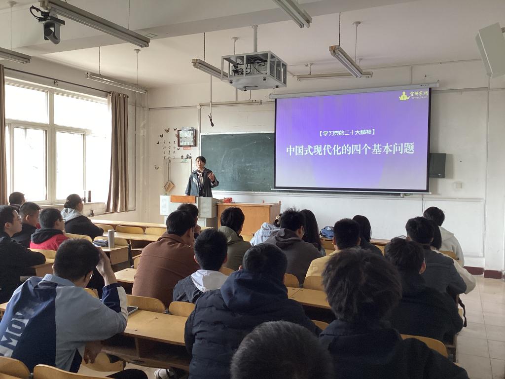 张永玲老师从中国式现代化的蓝图、鲜明特征、本质要求以及必须牢牢把握的重大原则等四个基本问题出发,深入解读了中国式现代化这一主题;随后,全体党员共同观看微纪录片《这十年——突破的中国》,视频中我们看到了中国的科技事业突飞猛进,经历着整体性、格局性的重大变化,创新正推动中国经济发生历史性突破。