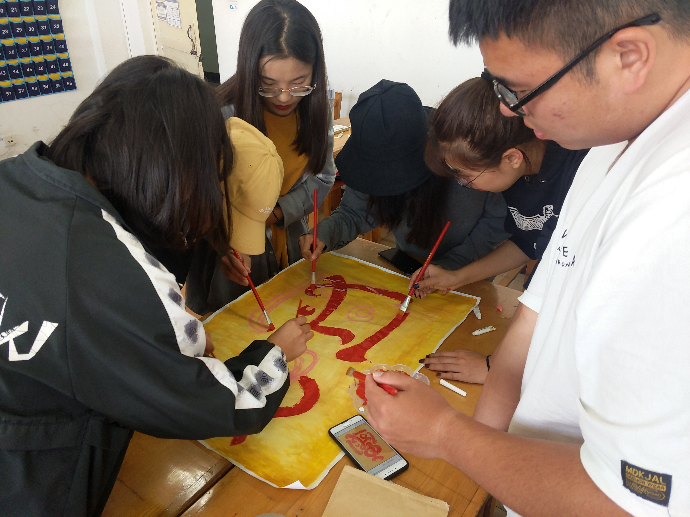 本次活动主要分为三个部分:1.各支部商量并确定好绘画主题;2.各支部合力现场作画;3.各支部展示作品并讲解作品的意义。整个绘画过程井然有序,大家齐心协力,各显身手,一双双灵巧的手下流淌着对祖国的热爱之情。