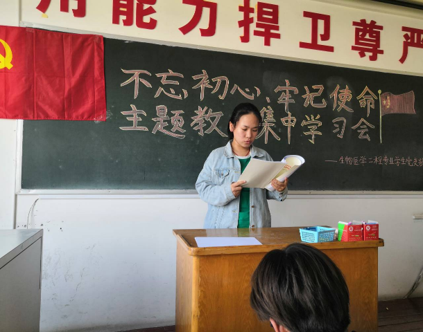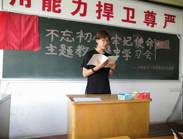 生物医学工程专业学生党支部在10409教室召开了“不忘初心,牢记使命”主题教育集中学习会,支部书记石芳娟老师和支部所有党员、预备党员、重点发展对象、积极分子参加了本次学习会。