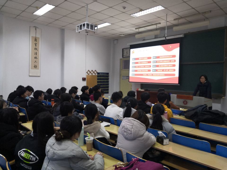 邢杰老师对《习近平谈治国理政》第三卷出版的意义、涵盖内容、学习方法进行了解读。接着,张佳淼和张天宇两位同志对第四专题《坚持以人民为中心》的两篇文章进行了领读,通过读原著、学原文、悟原理的形式,使广大同学深刻体会到我党全心全意为人民服务的根本宗旨,充分展现了以人为本、人民至上的价值取向,深刻践行了立党为公、执政为民的执政理念。