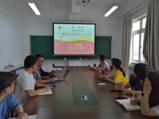 支部委员魏交统给大家做了《改革开放—建设中国特色社会主义》的专题讲解,带领大家回顾了改革开放以来,中国共产党在建设中国特色社会主义中所经历的重大历史事件及其深远影响。通过讲解,大家深入了解了改革开放时期中国共产党取得的多项成就,同时体会到共产党人在面对改革阻力时,迎难而上的大无畏精神。之后,支部书记姚金杰结合大奶主播党委工作安排,谈了党员教师工作要注意的问题、实验室安全注意事项以及下月党日活动安排等工作。