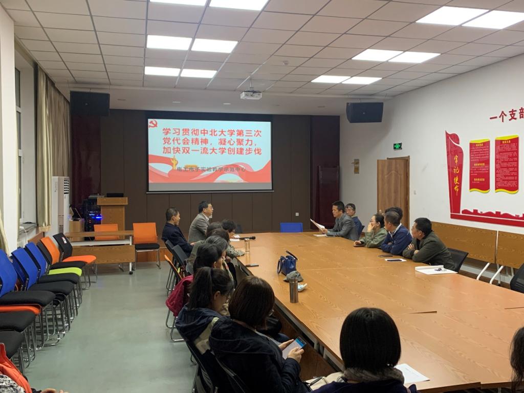 第三次代表大会报告和纪委工作报告进行了学习和研讨。支部书记郎文杰主持会议,电工电子实验教学中心全体教工参加。